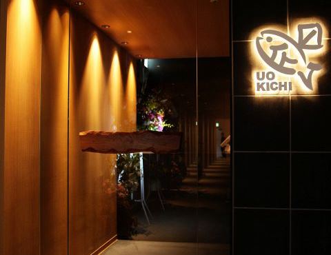 「UOKICHI」の看板と日本酒のディスプレイが出迎えるモダンなエントランスに、高級そうなイメージを持たれる方が多いのですが、見た目とは裏腹に実は大衆居酒屋。道内各地の漁港直送と中央卸売市場で買い付けた旬の魚介を、手頃な価格で味わっていただけます。